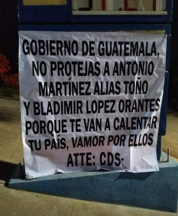 «Правительство Гватемалы, перестаньте защищать Антонио Мартинеса и Бладимира Лопеса Орантеса, иначе мы разогреем вашу страну. Мы идем за ними.