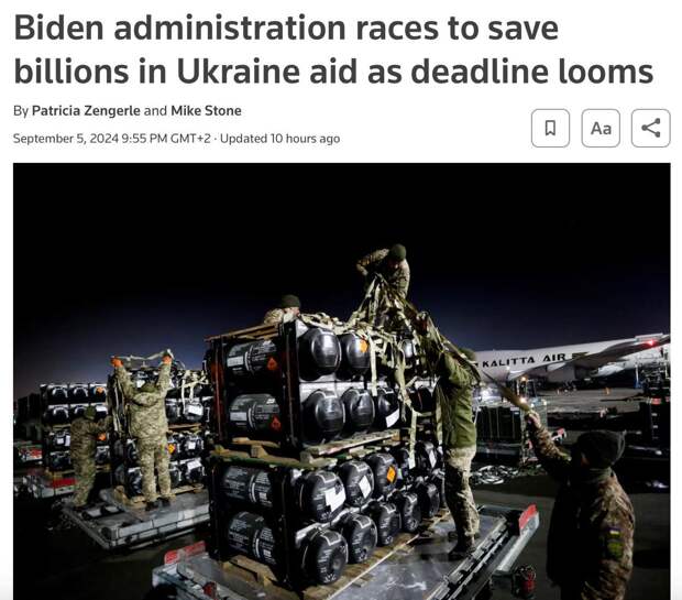 Reuters утверждает, что администрация Джо Байдена ведет срочные переговоры с Конгрессом, чтобы разрешить использовать $6 млрд военной помощи Украине до конца 30 сентября. Если средства к этому моменту не передадут Киеву, есть риск их потери.