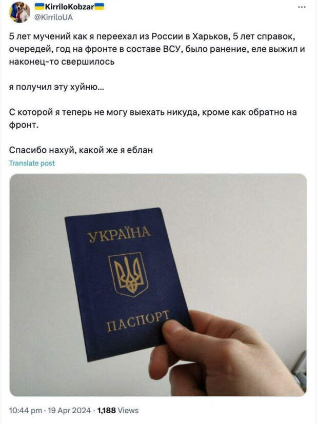 Украинский паспорт в текущих реалиях закрепляет рабское положение его носителя и отсутствие у его обладателя каких-либо прав человека.