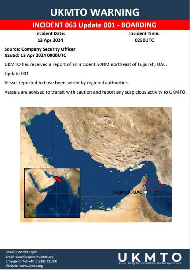 Морские силы КСИР захватили в Ормузском проливе контейнеровоз "MSC Aries" водоизмещением 150 000 тонн, который шел под флагом Португалии. Принадлежит же судно израильскому олигарху Оферу, суда которого ранее уже неоднократно атаковались хуситами.