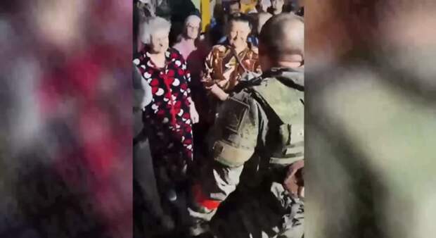 Офицер пошутил, что с обеих сторон фронта в местных жителях видят «ждунов». Эти слова вызвали у гражданских веселый смех.