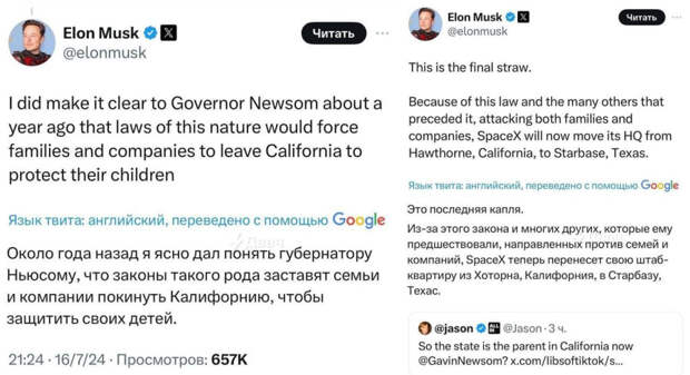 Илан Маск сбежал из Калифорнии вместе со своими компаниями в Техас.