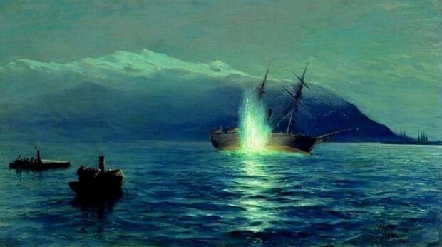 Мне самой запомнившейся еще с детства картиной Лагорио была картина «Потопление катерами парохода „Великий князь Константин“ турецкого парохода „Интибах“ на Батумском рейде в ночь на 14 января 1878 года". Первая победа торпедных сил отечественная флота в истории.